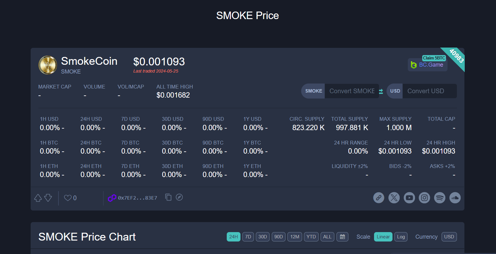 Smoke Token is primarily traded on decentralized exchanges or lesser-known crypto trading platforms. Details such as minimum deposits, liquidity, and execution transparency are often unclear. Promises of high returns or leveraged positions should be treated with caution, as platform presence alone does not guarantee safety.