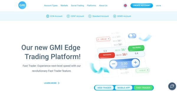 GMI offers multiple platforms—MT4, MT5, and its proprietary GMI Edge—plus account types like Cent, Standard, Bonus, and ECN. Minimum deposit starts around $15, and leverage can go up to 1:2000, depending on account type :contentReference[oaicite:2]{index=2}.